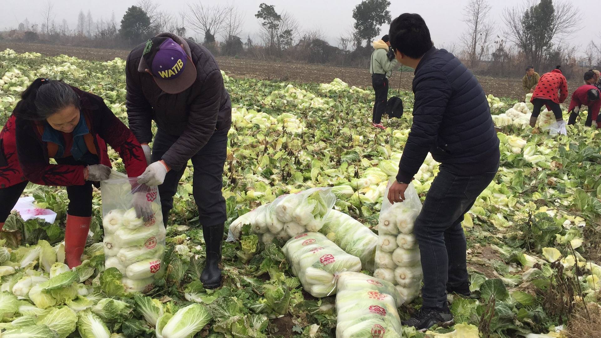 合作電商公司員工協(xié)助菜農(nóng)打包運輸娃娃菜